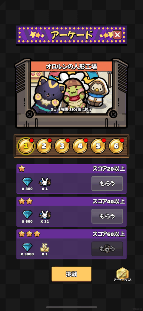 - アーケードパスを購入すれば星3報酬も受け取れるため、コストに見合うか検討して進めるとよいでしょう。