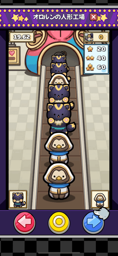 レベルが上がるとクリアに必要なポイントの数と流れてくるぬいぐるみの種類が増えていきます。