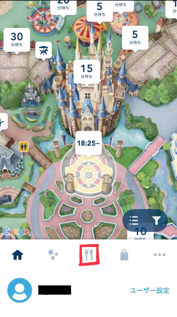 レストランを確認する場合は、カトラリーマークを選択することで確認できるようになります。