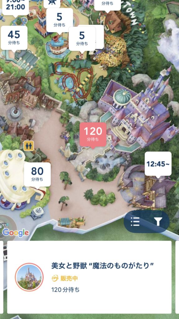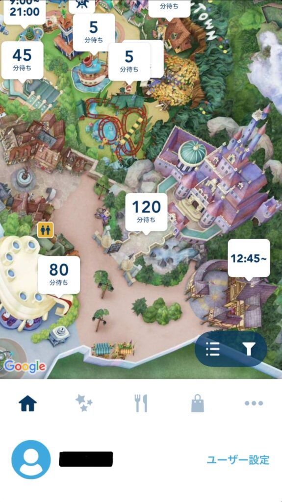 さらに、アプリではアトラクションの待ち時間もリアルタイムでチェック可能となっています。