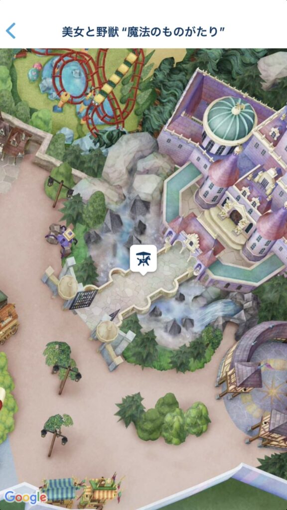 ディズニーランド または ディズニーシー内にある各アトラクションやレストラン、トイレがどの辺にあるか確認することができます。