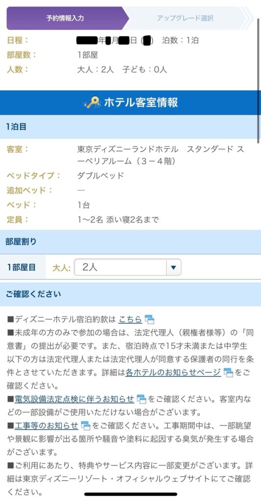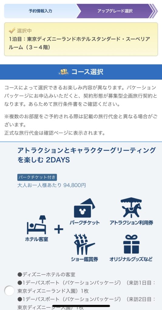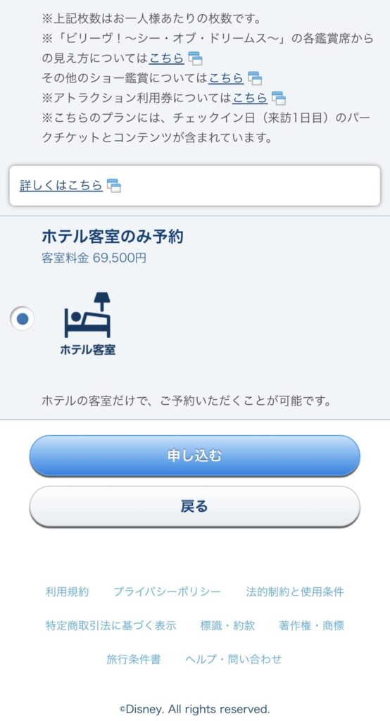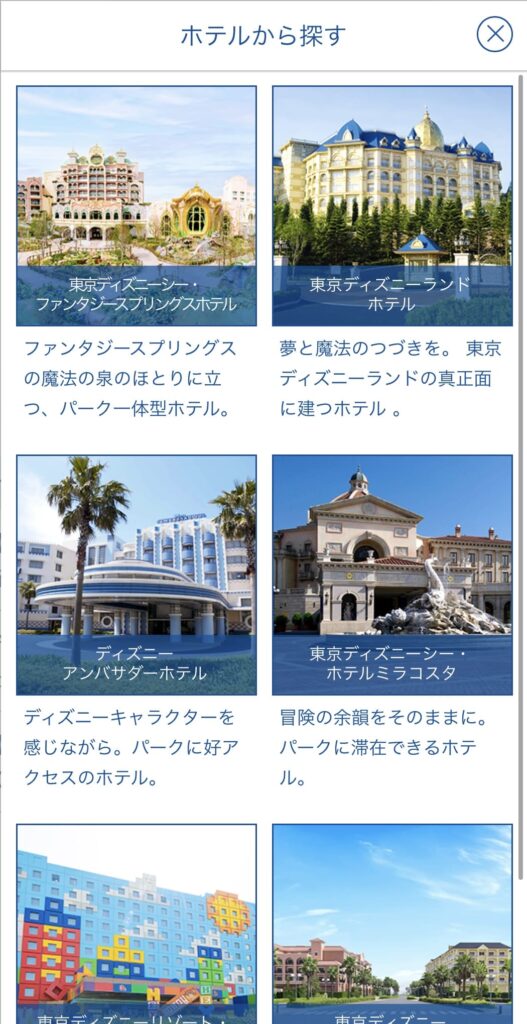 今回はディズニーランドホテルを選択します。