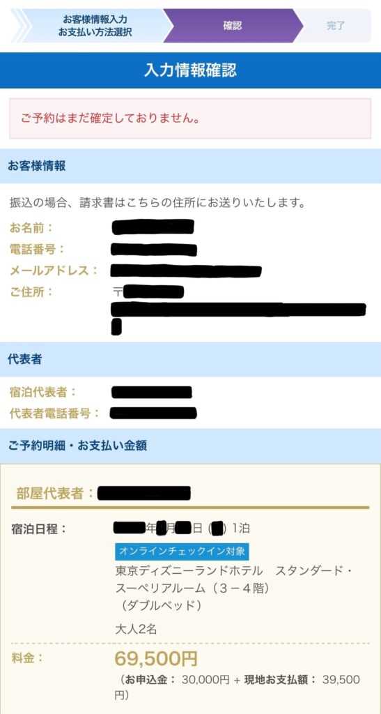 ※公式サイトと予約手順は同じとなっています。