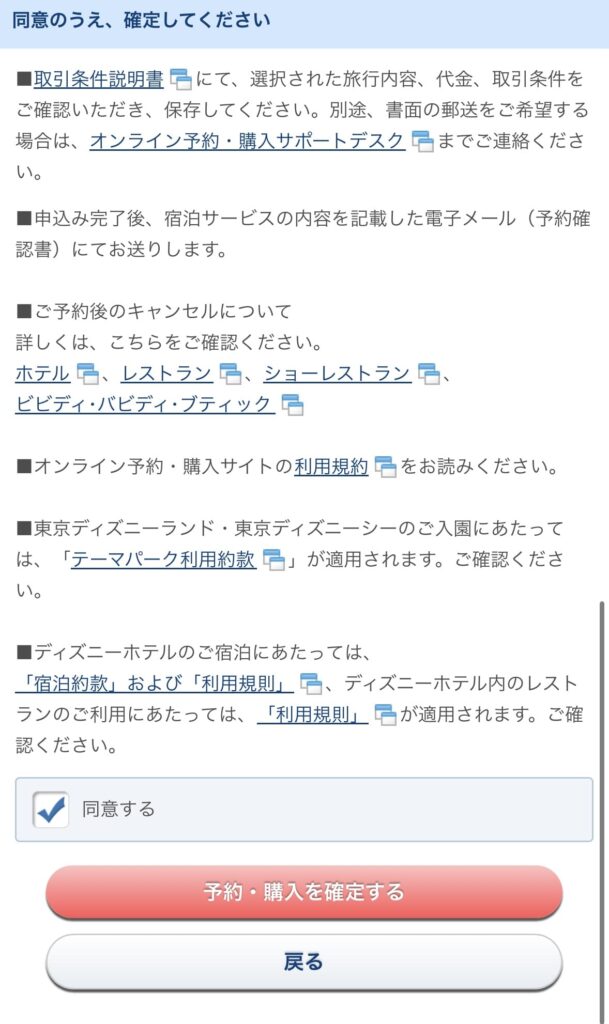 ホテル客室情報や宿泊人数等にお間違えがなければ注意事項を確認しましょう。